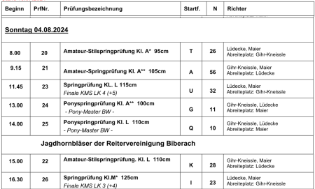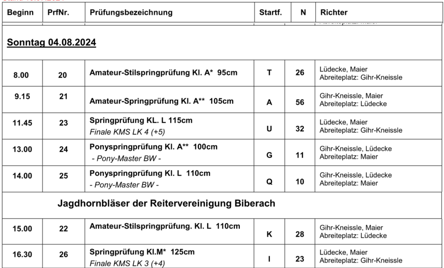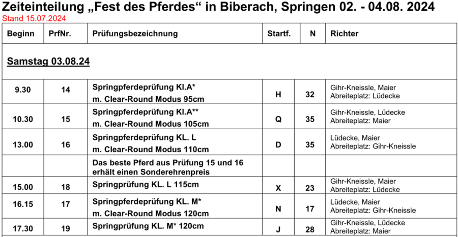Zeiteinteilung Springen 02. August - 04. August (Stand 15.07)